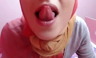 A hot super-bitch in a hijab records a intercourse video for her boyfriend where she masturbates