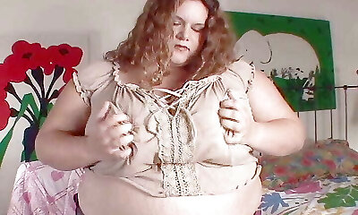 Lustful Plus-size wife playing with huge boobies in the morning